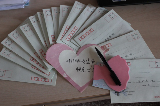 如果说女生是寂静的夜空,那么男生就是那闪烁的星星,正如夜空需要星星来点缀一样,女生也需要男生的关爱和呵护。在一年一度的女生节来临之际。3月7日,化学与化工学院院411班全体男生通过写祝福送信封的方式来向全班女生表达节日的问候。